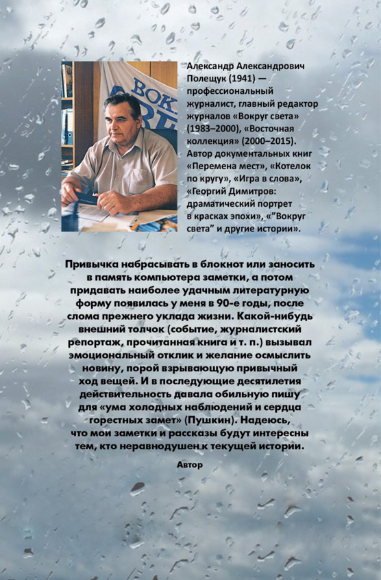Мои миниатюры и короткие рассказы не претендуют на адекватное отображение событий последних лет. Это лишь отдельные впечатления восприимчивого к переменам человека, которые могут быть интересны и другим людям, неравнодушным к текущей истории.
