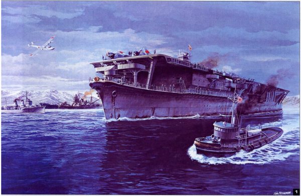 1. Авианосец «Сорю» в гавани о. Эторофу. С картины Тома Фримэна