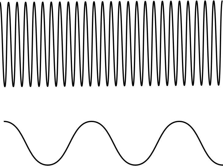 Чем выше частота, тем больше информации в единицу времени её можно передать. Но тем более она подвержена помехам среды и поэтому на меньшее расстояние можно передать сигнал. Чем частота меньше, тем она менее подвержена помехам среды и тем дальше она распространяется. Чем выше амплитуда, тем больше потенциала во фронте волны. Тем больше она несёт энергии и меньше подвержена влиянию среды.