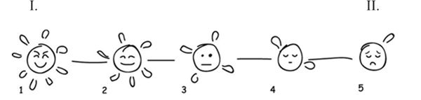ШКАЛА ПСИХИЧЕСКОГО ЗДОРОВЬЯ. На сей раз рассмотрим ранее упомянутую шкалу, только без больных, короткий ее отрезок (I – здоровый, II – нездоровый).