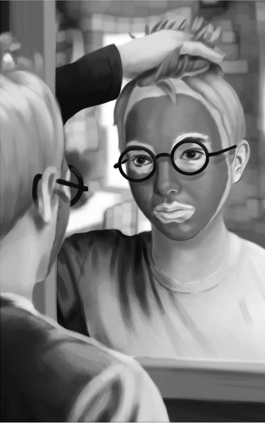 Лёшка старательно намазался, посмотрел на себя в зеркало, в отражении увидел светловолосого негра в очках.