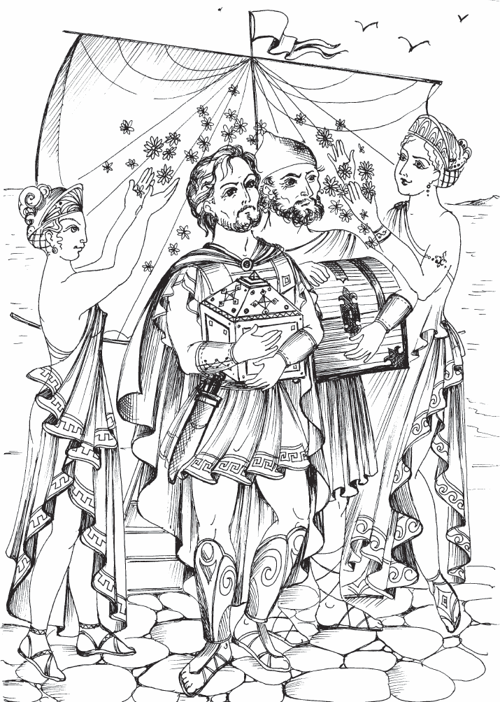 Приближался вечер. Корабль подгонял попутный ветер, поэтому гребцы не особенно выматывались на вёслах. В четырёх сотнях стадий шёл сопровождающий военный корабль.