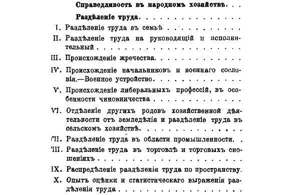 «В настоящее время, повидимому, этот вопрос позволителен менее, чем когда либо. Даже люди, особенно подчеркивающие свой идеализм, называют его бесполезным вопросом, на который никто не сумеет дать ответа. К мыслям Аристотеля о распределяющей справедливости относятся свысока как к устарелым и научно опровергнутым. Поверхностным образом сближая явления естественной жизни с социальными процессами, ссылаются на учение Дарвина о борьбе за существование, которая будто бы дает право сильнейшему покорять слабого, и исключают всякую мысль о справедливом распределении земных благ. … Не смотря на некоторые уступки в своих основных воззрениях новому направлению, они (политико-экономы, – А.В.) все еще движутся по старым колеям английской и немецкой школьной догматики, которая не знает других категорий, кроме спроса и предложения. На заднем плане при этом обыкновенно скрывается у них мысль о том, что так как более справедливого распределения имуществ требует социализм, то для консервативного гражданина, сторонника партии порядка, нет другого выбора».