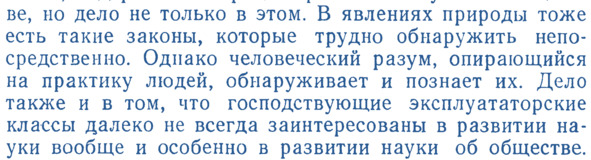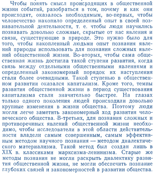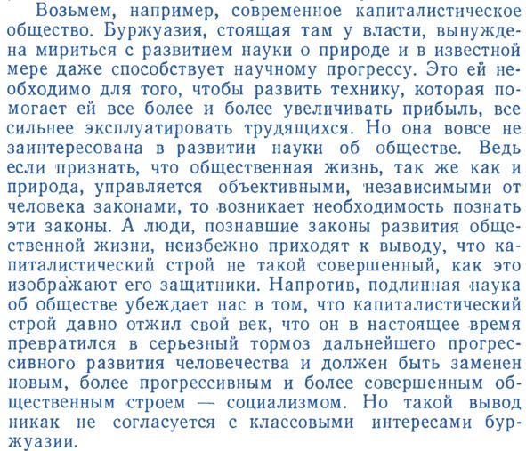 Эти и прочие рассуждения автора данного учебника надо, конечно, научно преломлять к современному состоянию России и состоянию «общественных наук», – как ведущих структур общественного сознания, и, соответственно, обсуждать многие проблемы, вскрываемые данным учебником, – которые высвечиваются и акцентируются невольным сопоставлением мышления автора об обществе и прогрессе в условиях социализма и современного мышления о проблемах общественного развития. В отношении значения «общественных наук» для государства, – как комплекса управления общественным развитием, и общества, общественного прогресса здесь надо сразу же констатировать, что научно-философскому сообществу, ещё до пресловутой «перестройки», необходимо было ставить задачу концептуальных преобразований не только в организации данных наук, но и во всём комплексе научно-философской деятельности общества. Социально-гуманитарные науки (а не «общественные»), ещё в тот период целесообразно было объединить в «системное обществознание», соответственно состоянию «организационно-системной» методологии к тому периоду, её комплексной общественной прогрессивности (что особо демонстрировалось и хорошо видно теперь по организационно-технологическому прогрессу западных корпораций). То есть «перестройку» необходимо было начинать действительно (как пропагандировалось) с «нового мышления», но не по поводу собственности на средства достижения личного благополучия в потреблении, а в плане научного самопознания, с переходом от догматической методологии к общественно адекватной, системной, – на базе успешно апробированных на Западе и частично в СССР системно-организационных и кибернетических подходов в исследованиях и проектировании (см. Ежегодник СССР «Системные исследования»). Современный период требует, в сущности, комплексной мобилизации всех интеллектуальных и прочих ресурсов не только для технологического повышения производительности труда в актуальных направлениях, но и для организационной рационализации труда в масштабах всей страны.
