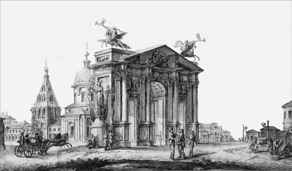Возведение триумфальных врат на площадях Москвы и Санкт-Петербурга стало одним из тех многочисленных новшеств, что пришли в Россию в царствование Петра. В отличие от традиции Запада, где строительство арок приурочивалось к самым разным поводам, в России арки ставили в случае военных побед и коронаций. Интересно, что в Москве, в основном, ставили арки в честь сухопутных побед, а в Петербурге, провозглашенном столицей в 1712 г., – морских.