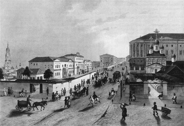 Мы поворотили направо и через ворота каменной стены, окружающей Китай-город, въехали в Зарядье. Так называются несколько улиц, составляющих часть Китая-города. Сии улицы так худы, что и в самой Пензе считались бы посредственными, и так узки, что две кареты никоим образом не могут в них разъехаться. При самом въезде в оные мое обоняние было поражено таким гнусным запахом, что и говорить очень гнусно…