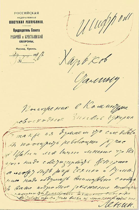 Телеграмма В.И. Ленина И.В. Сталину о положении дел в Коминтерне и перспективах революционного развития в странах Центральной Европы