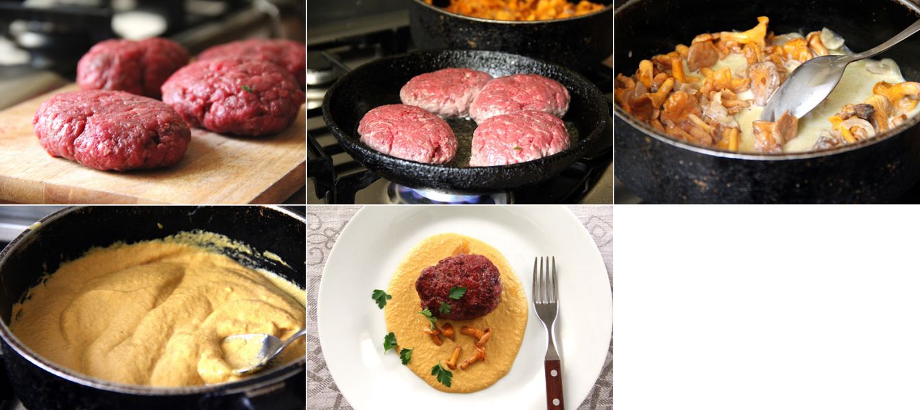 КОТЛЕТЫ ИЗ ЛОСЯТИНЫ С ГРИБНЫМ СОУСОМ