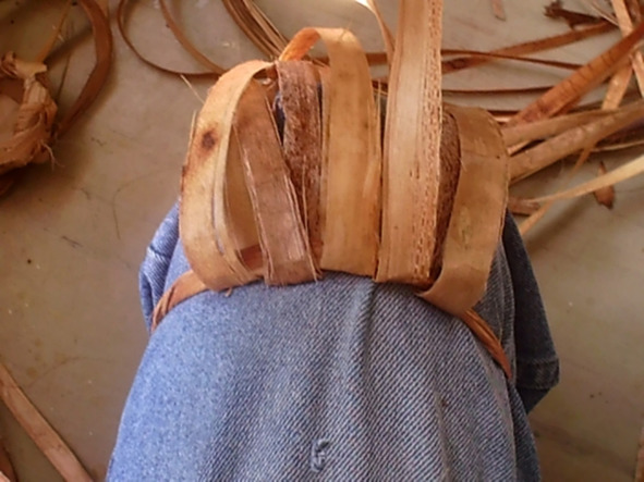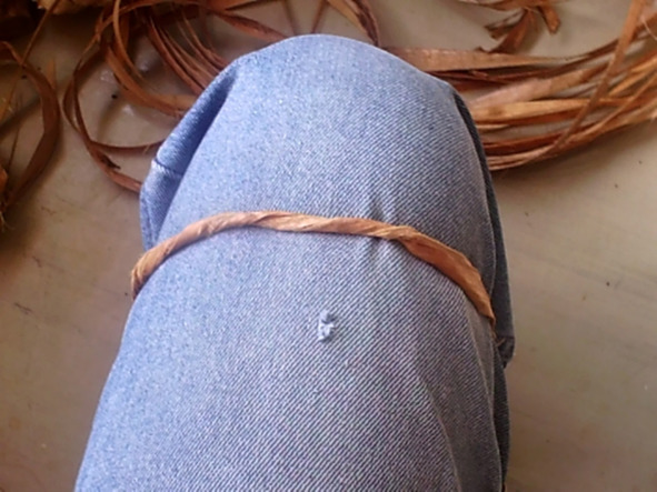 Веревочку свитую из мочала, длинной. Где-то 2—3 метра. Прикрепляем на ноге.
