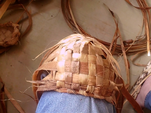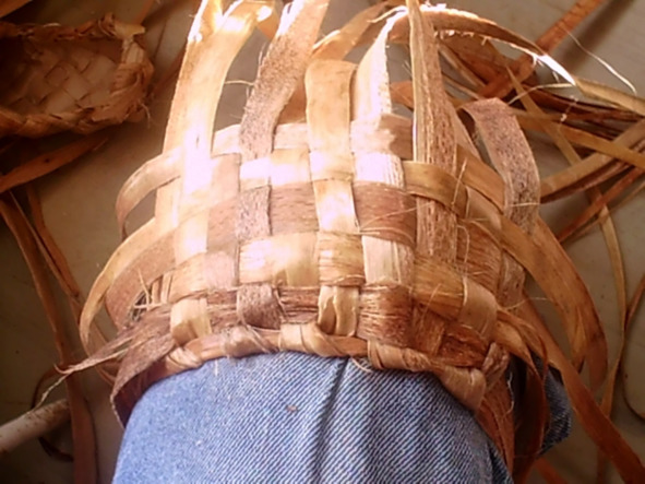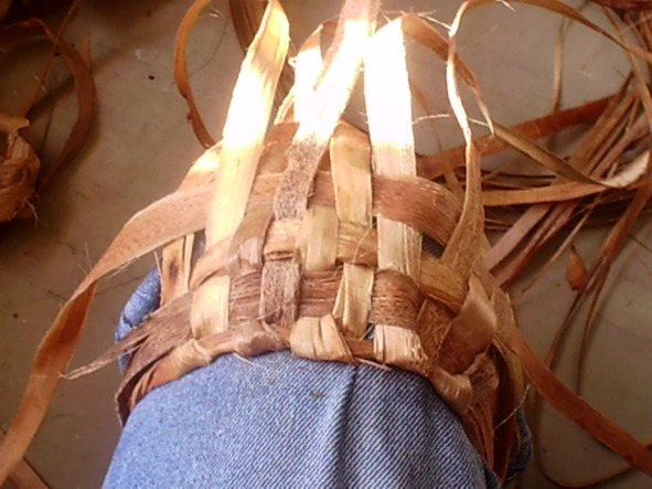 Запомним количество лычек и их ширину для того, чтобы 2 лапоть заплести такой же. И находим середину. Центр.