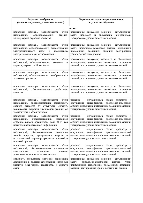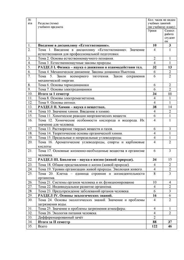 Рабочая программа учебной дисциплины Естествознание для
