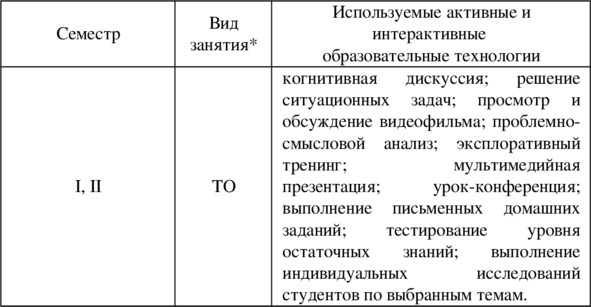 Активные и интерактивные образовательные технологии, используемые в аудиторных занятиях