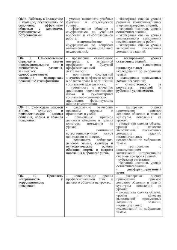 ОК 12. Проявлять нетерпимость к коррупционному поведению.