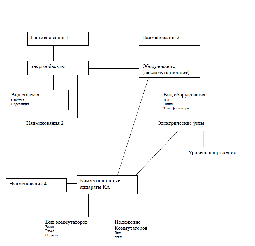 На рис. 3 показан пример структуры семантической сети для задач диспетчерского управления в электросетях.