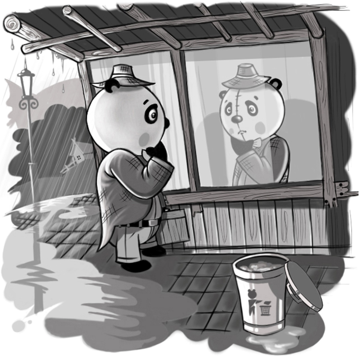 Но есть и что-то такое, что огорчает Панду Бо. Когда он смотрит на себя в зеркало или видит свое отражение в витрине магазина (особенно продуктового и особенно в ясный день), он порой не узнаёт себя.