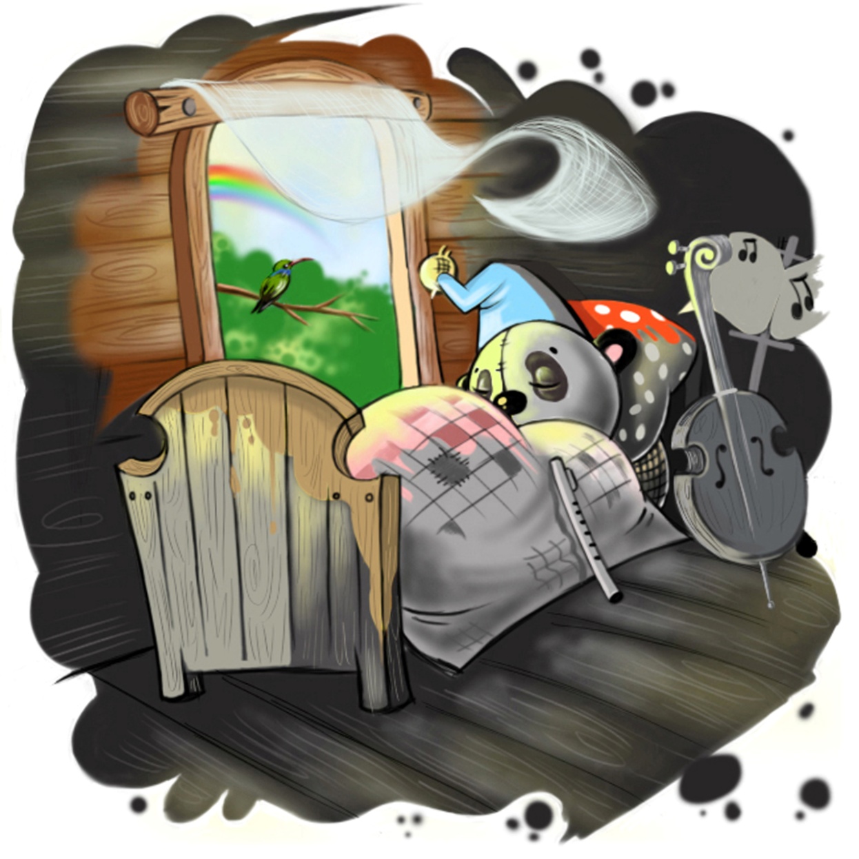 И когда Панда Бо ложится спать с этими грустными мыслями, ему часто снится один и тот же сон. Во сне все вокруг него разноцветное! Панда Бо не знает, как называются эти цвета, но среди них ему совсем не грустно.