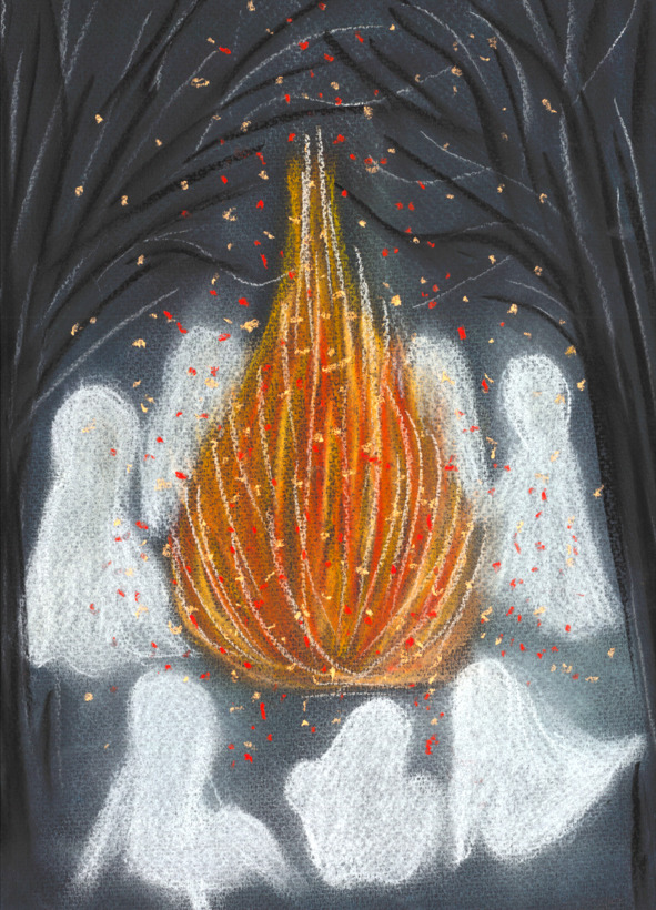 – А что они бросают в костёр? Дров же нет! – спросила я у Мужчины шёпотом.