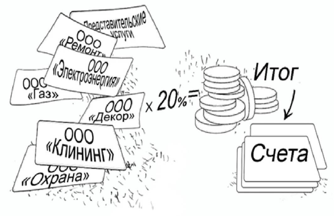 Но в каждом ООО уже заложена прибыль, которую посчитал их управляющий. Дальше вы добавите свой интерес, разделите это все на счета и выставите в качестве платы за свои услуги. Получатели, в свою очередь, внесут эти суммы в свои цены, и расходы увеличатся как снежный ком.