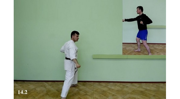 (нападение) разрываем дистанцию сохраняя положение ног (передняя и задняя) и встаем в правостороннюю Позицию (миги)