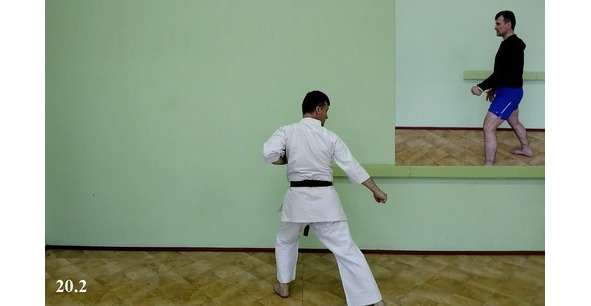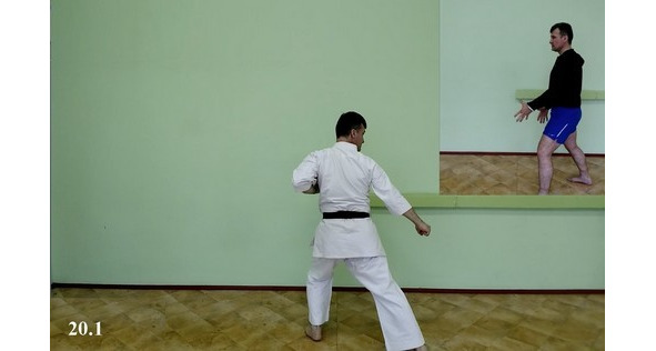 (защита) Сохраняя положение ног принимаем левостороннюю позицию (хидари) на удобном положении от оппонента.