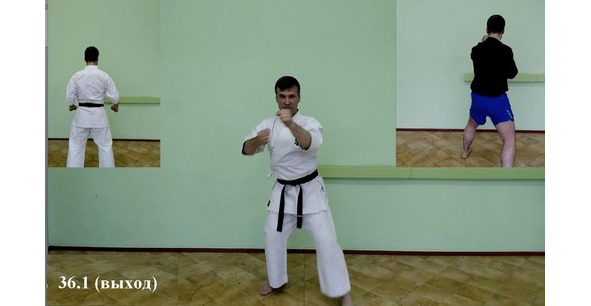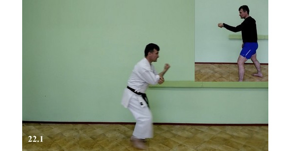 (защита) разрываем дистанцию сохраняя положение ног (передняя и задняя) и встаем в левостороннюю Позицию (хидари).