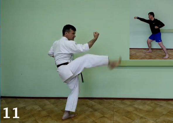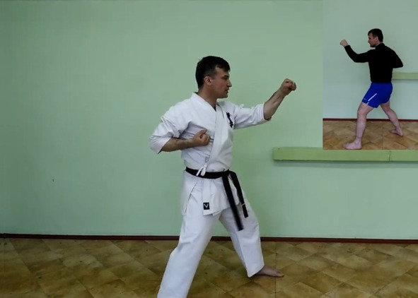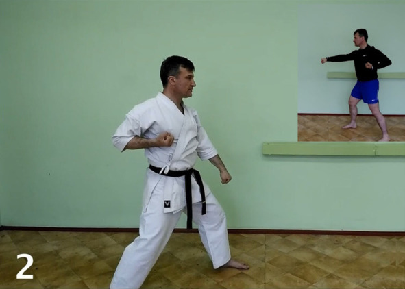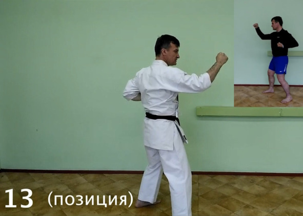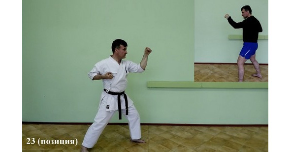 Данное положение характерно для защиты в кекусинкай каратэ и является промежуточным при разных движениях и разворотах.