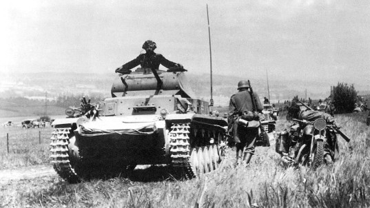 Сами по себе «панцеры», то есть танки, не давали однозначного ответа на вопрос о причинах успехов германских войск. Во Франции в 1940 г. противником немецких танкистов были средние танки «Сомуа S-35» и тяжелые танки «B1bis», превосходившие наиболее совершенные на тот момент немецкие танки «Pz.III», «Pz.IV» по бронированию и возможностям орудия. В СССР в 1941–1942 гг. танковые войска Красной Армии имели на вооружении значительное количество «Т-34» и «КВ», обладавших над немецкими танками подавляющим превосходством по измеряемым в миллиметрах и километрах величинах. Значительную часть танкового парка вермахта в период самых громких побед 1939–1941 гг. составляли легкие танки «Pz.I» и «Pz.II». Второй загадкой является отсутствие количественного превосходства, которое могло бы хотя бы теоретически компенсировать недостатки техники. Например, 1 мая 1940 г. в составе германской армии было 1077 «Pz.I», 1092 «Pz.II», 143 «Pz.35 (t)», 238 «Pz.38 (t)», 381 «Pz.III», 290 «Pz.IV» и 244 вооруженных только макетами орудий и пулеметами командирских танков. Французская армия имела 1207 легких танков «R-35», 695 легких танков «H-35» и «H-39», примерно по 200 танкеток «AMC-35» и «AMR-35», 90 легких «FCM-36», 210 средних «D1» и «D2», 243 средних «Сомуа S-35», 314 тяжелых «B1» различных модификаций. Если вывести эти танки толпой в чистое поле, то теоретически французские машины расстреляют своих немецких оппонентов без особых затруднений. Однако, как мы знаем, в реальности этого не произошло.