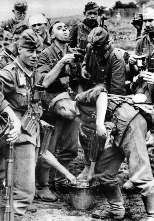 Глоток воды на пути к Сталинграду. Немецким пехотинцам предстояло прошагать многие километры по степи до первой встречи с войсками резервных армий.