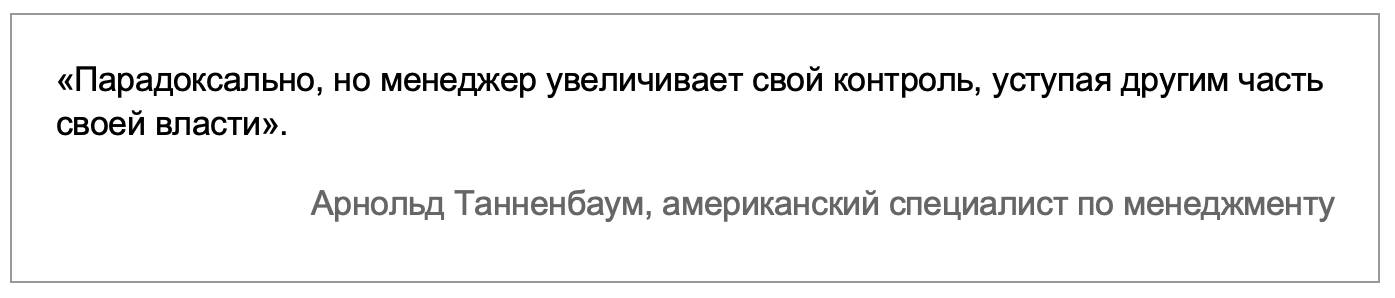 Для сильной команды эффективным будет взаимодействие личностей равного уровня, которые точно понимают свои преимущества и роли. И тогда делегирование не будет разделять команду на начальника и подчиненных, а создаст содружество специалистов, которые вместе станут обрабатывать вызовы, приходящие извне.