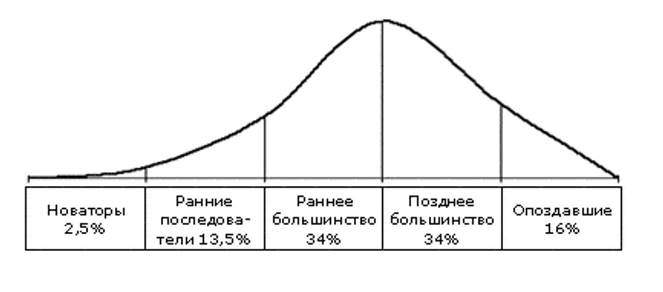 Раннее большинство: охотно следуют за другими в процессе восприятия инноваций, однако редко возглавляют это движение.