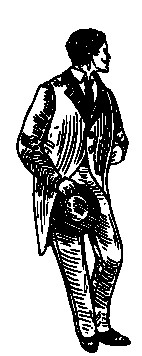 Сюртук – это верхняя мужская одежда, удлиненного кроя, как правило, длиною до колен. Может быть с одним или двумя рядами пуговиц. Был популярным предметом одежды с конца XVIII в. и на протяжении всего XIX. Чаще всего носился с жилетом и брюками с высокой посадкой на талии.