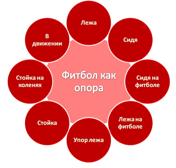 Рис. 1. Основные варианты использования фитбола.