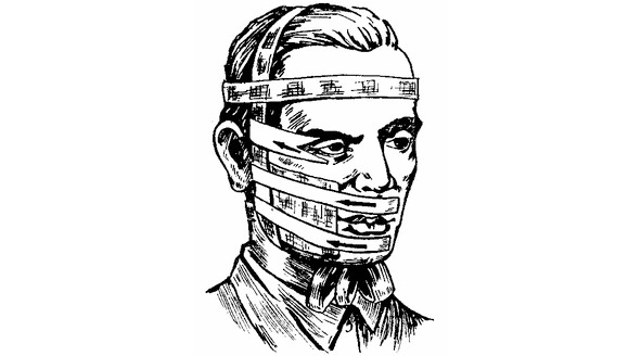 Рис. 1. Лечение положением: натягивание лейкопластырем мышц левой (здоровой) половины лица и правой круговой мышцы