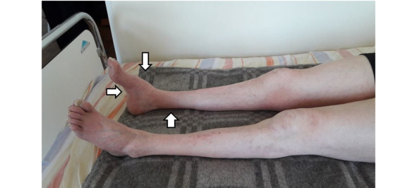 Рисунок 2. Признаки гипотрофии мышц нижних конечностей с деформацией стоп у пациента с полинейропатией Шарко—Мари—Тута.