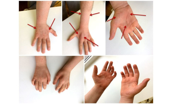 Рисунок 1. Признаки гипотрофии мышц верхних конечностей у пациента с полинейропатией Шарко—Мари—Тута.