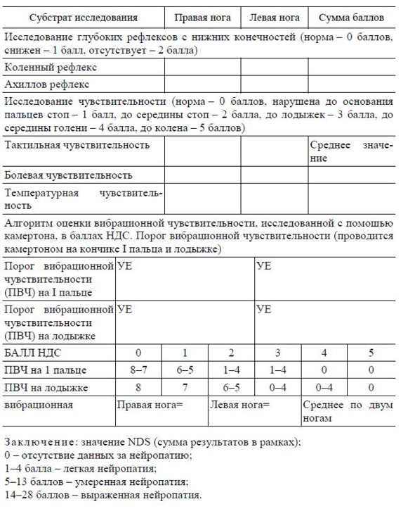 Таблица 3. Шкала NDS (Neuropathy Disability Score).