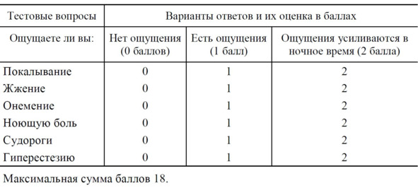 Таблица 4. Шкала (вопросник) нейропатического симптоматического счета.