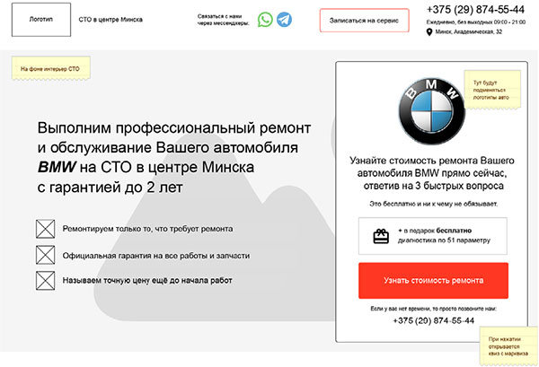 Я сделал схему, в которой вынес все фишки, которые увеличивают вовлеченность на лендинге и помогают получить максимальный результат в виде заявок и звонков.