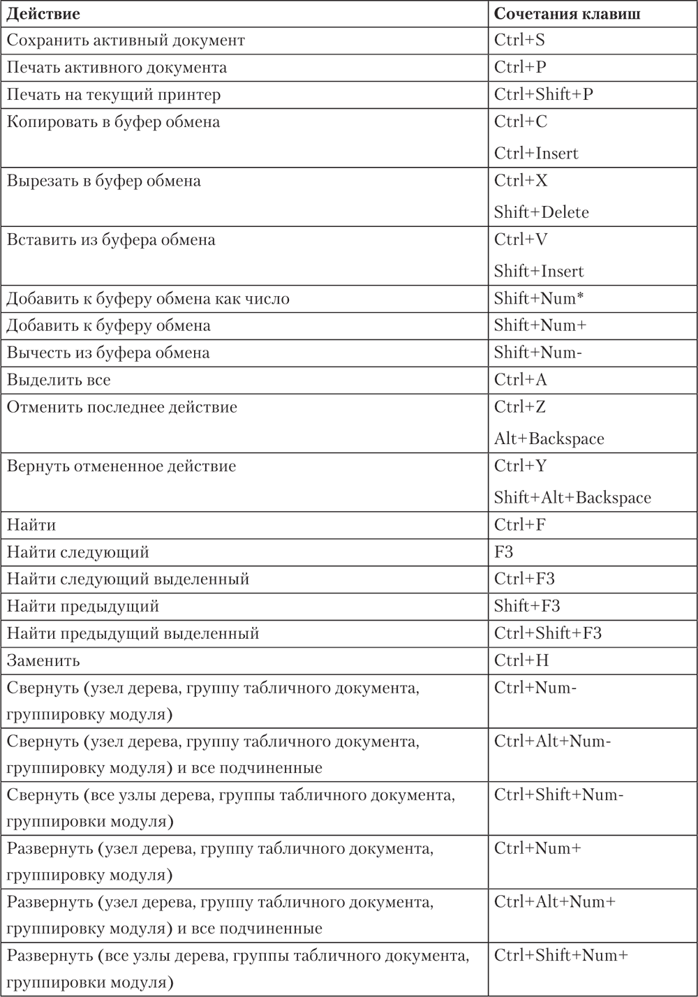 В данном разделе приведен перечень сочетаний клавиш, которые наиболее востребованы у пользователей (табл. 1.1–1.7).