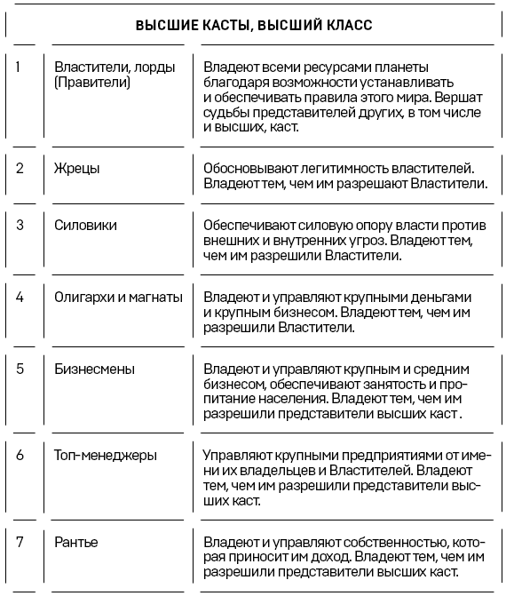Представитель высшей касты может заниматься чем угодно, но он все равно будет иметь растущий денежный поток и гигантское поле возможностей.