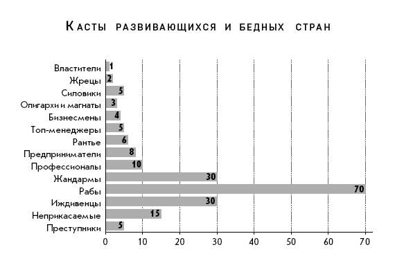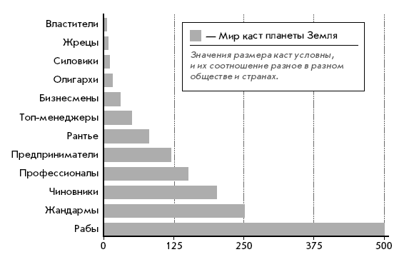 Дефицит ресурсов, доминирование прагматической системы ценностей и необходимость в объединении привели к тому, что человеческое общество напоминает огромную пирамиду. Каждый ее уровень – это каста. Чем больше влияния и дефицитных ресурсов сосредоточено в руках представителей конкретной касты, тем выше она находится.