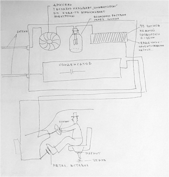 Рядом стоял его создатель, с каким-то мужчиной, лет 60-ти, седоволосым, крепкого телосложения. Он что-то обсуждал, держа в руках ту самую чёрную коробочку, благодаря которой автомобиль двигался. Я поздоровался и представился. Как оказалось меня ждали. Я попросил поделиться любыми сведениями об этом устройстве. Тесла поставил её на стол и сказал, что я могу изучать её, пока они отойдут по делам. Конструкция, которая мне представилась, была примерно следующей.