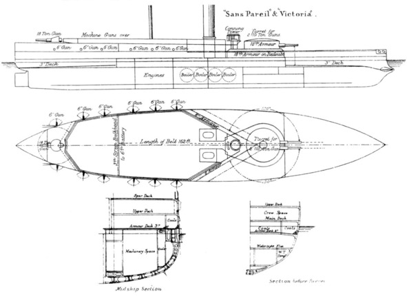 Схема броненосца типа «Виктория», ставшего прообразом для «Императора Александра II»
