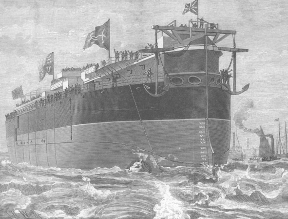 Спуск на воду HMS Agamemnon на верфи Чатема. Иллюстрация для The Illustrated London News от 27 сентября 1879 года.
