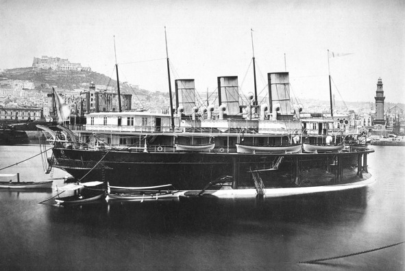 Англичане, видимо, решили разобраться с российским фрегатом «Владимир Мономах» и броненосец «Агамемнон» стал имитировать неисправность руля и направил свой таран, прямо на «Мономах», явно намереваясь вспороть его борт в подводной части.