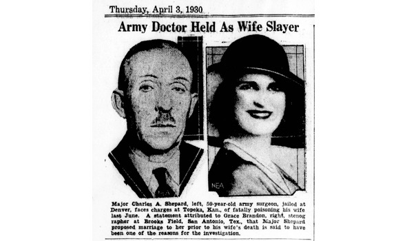 Она рассказала о том, как познакомилась с майором Шепардом в офицерском клубе. Чарльз, скучавший по женскому обществу во время обучения на курсах повышения квалификации офицеров медицинской службы, моментально ею увлёкся. Роман оказался на удивление бурным. Шепард, возвращаясь в Канзас, подарил Грейс канарейку! Автор знает человека, подарившего любимой игуану, но канарейка тоже выглядит необычно. Оригинальнее в качестве подарка, пожалуй, выглядел бы только тарантул. Сделал майор и другой подарок, более рациональный. Он застраховал собственную жизнь на 30 тыс.$ [эта сумма эквивалента приблизительно 1,2—3 млн. современных долларов в зависимости от того, по каким товарным позициям пересчитывать] и назначил получателем денег при наступлении страхового случая Грейс. Последняя была чрезвычайно впечатлена этим поступком любовника.