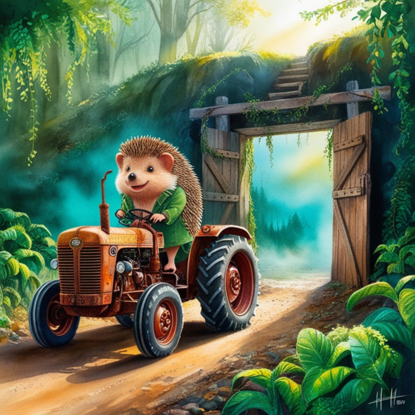 There lived a hedgehog named Grisha. Grisha was not just a hedgehog; he was an experienced forestry tractor driver. One day, while clearing a path in the dense undergrowth, Grisha came across something unusual – a long-forgotten, abandoned mine.