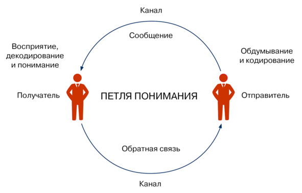 Чтобы отследить, где именно в коммуникации происходит сбой, необходимо понять, как устроен механизм передачи и обработки сообщений (рис. 1). Допустим, есть два человека, один из них – отправитель сообщения, другой – адресат. В голове отправителя сформировались какие-то мысли, он решил поделиться ими со своим адресатом, упаковал все в слова и отправил через речевой аппарат. Другой человек через органы слуха это воспринял, распаковал слова в понятные ему смыслы и образы и сделал какие-то свои выводы. Далее выдал свое сообщение в ответ. И таким образом по этому циклу у нас происходит общение.