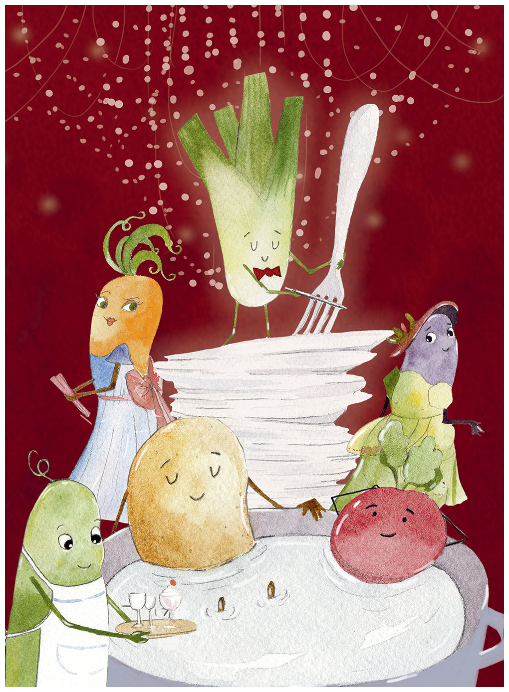 Праздник был в самом разгаре. Знаменитый вилколончелист Лука Пореев исполнял на серебряной вилке произведения овощных композиторов: «Свадебный марш Патиссона», «Полонез Редискина», «Полёт Щавеля» и, конечно, знаменитую «Лунную шпинату». Огурцы с помидорами, сбиваясь с ног, разносили еду и напитки. Для всех желающих в скороварке работал горячий бассейн, а на сезонной ярмарке продавались необычные сувениры.