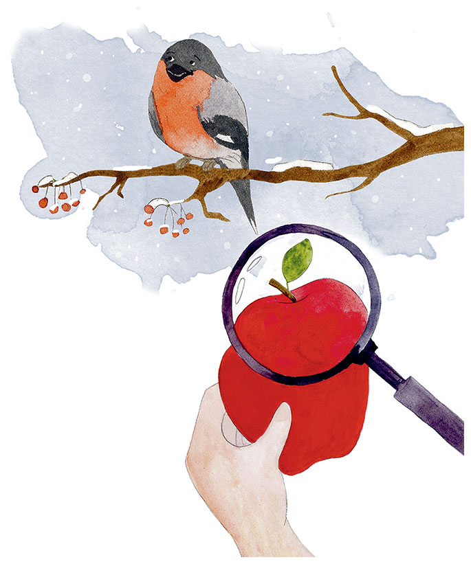 2. Гуляя по улице, обрати внимание на цвет листьев и цветов. Возможно, во многих из них содержатся антоцианы. Если не знаешь точно, спроси у родителей, как называются эти растения. Кстати, яркие ягоды можно увидеть на деревьях даже зимой. Знаешь, что это за ягоды и зачем им такой цвет? Попробуй догадаться самостоятельно, а потом сверься с ответом в конце книги.